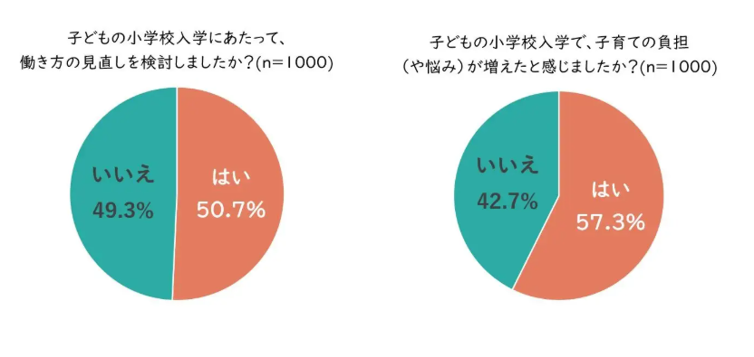 また、6割近い人が子供が小学校に入ってから「子育ての負担(や悩み)が増えた」と回答しました。