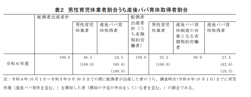 産後パパ育休の取得者は、全体の24.5%に達しました。産前産後は特にママの負担が大きくなるもの。パパが仕事を休んでサポートしてくれれば、とても頼もしいですね。